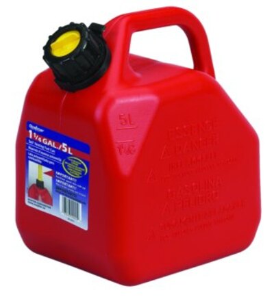 It's designed for safe storage and transportation of flammable liquids like gasoline, and often includes features like a spout, handle, and a flame...